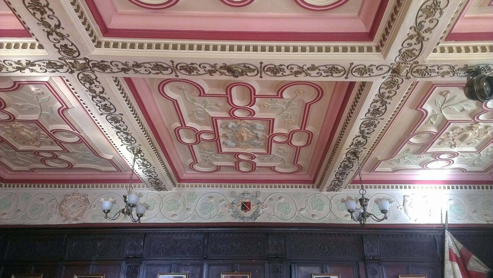 There is some wonderful oak panelling to be seen (see CAMRA article linked to below) as well as this plasterwork ceiling.